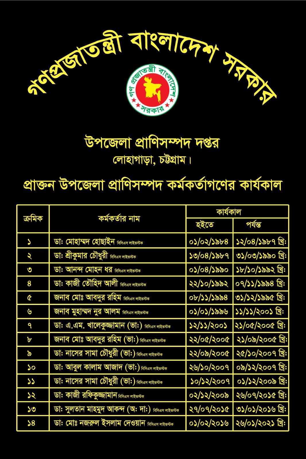 ১৫। ডা. মো. আসাদুজ্জামান (ভারপ্রাপ্ত) ২৭/০১/২০২১ হতে ১২/০৬/২০২১ ১৬। ডা. এ. এম.খালেকুজ্জামান ১৩/০৬/২০২১ হতে ০৪/০৯/২০২৪ ১৭। ডা. ফেরদৌসী আকতার (অতিঃ দাঃ) ০৪/০৯/২০২৪ হতে ২৬/০৯/২০২৪ ১৮। ডা. সেতু ভূষণ দাশ ২৬/০৯/২০২৪ হতে ........................বর্তমান